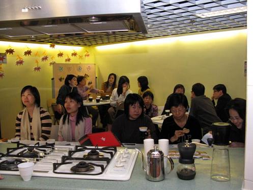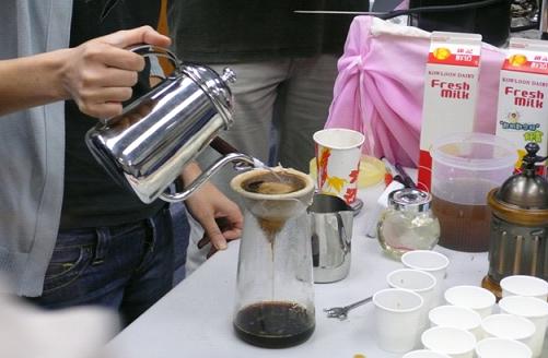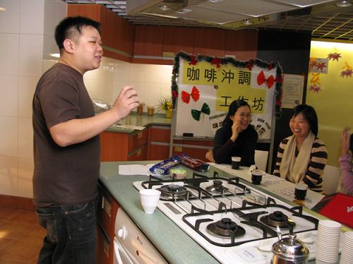 | 同學們一邊品嚐咖啡, 一邊聽導師講解. |